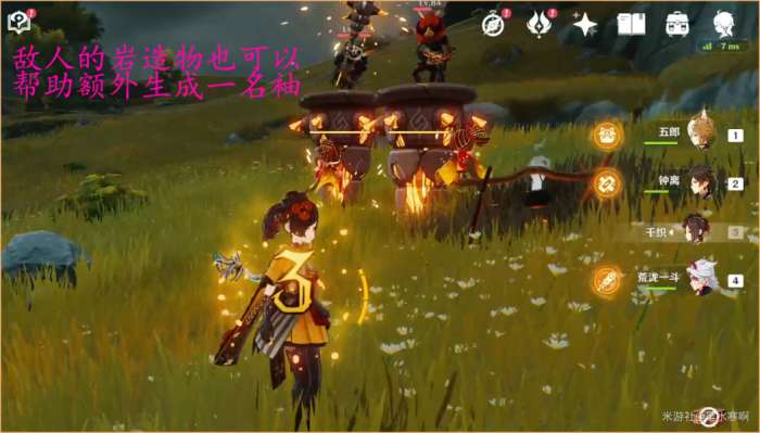 1号玩家的技能除了增加手臂的攻击范围外,还能直接帮助千织解除了需要考虑队友岩造物的限制。只要队友包含有双岩,就可以让千织的伤害输出最大化。