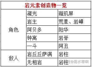 岩元素创造物最好的区分方法是通过判断它是否有生命值特征以及能否被敌人摧毁。一般来说,在角色的天赋描述中会明确写出基于角色生命值的相关信息。例如阿贝多的阳华,钟离的柱子等都算是岩元素创造物。而五郎的旗子,千织的人偶等则不是。除此之外,千织的E技能可以触发敌人的岩元素创造物这个特性。