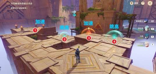 机关破谜范式的机制核心在于“增益效果”的拾取与放置。旅行者可以按战技键拾取对应的增益效果,再次按战技键将其放置在指定的蓝色圆圈内。