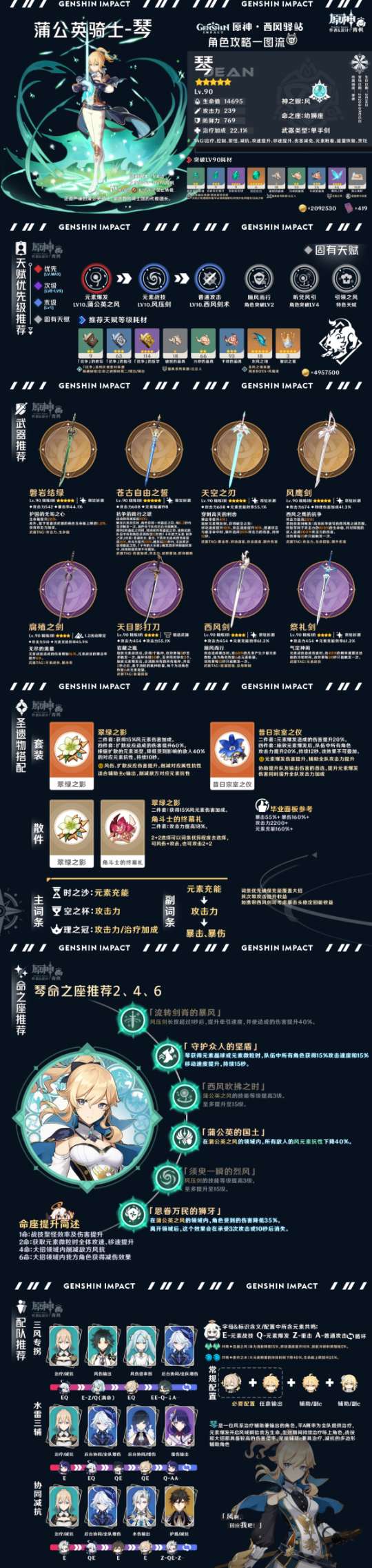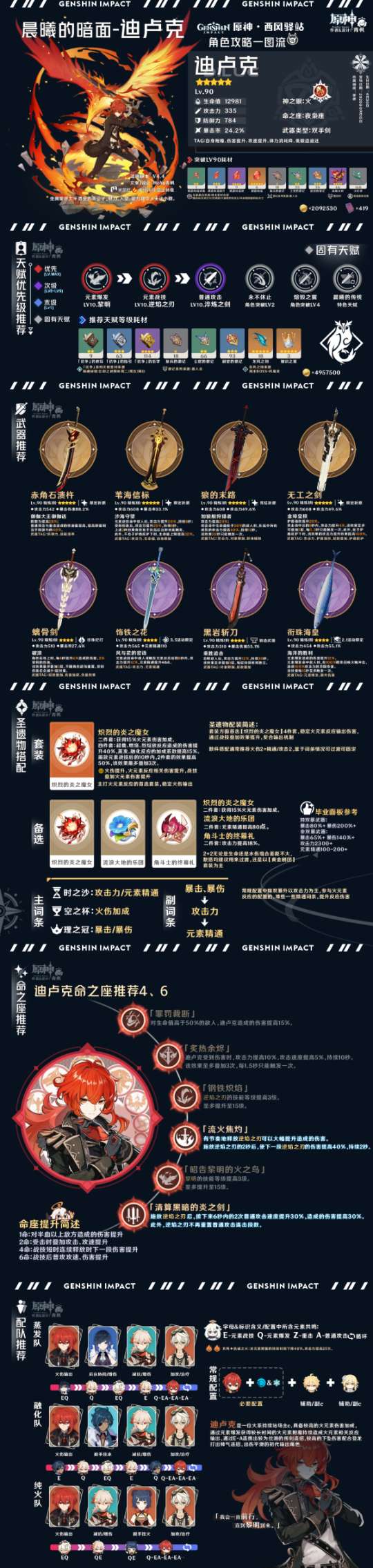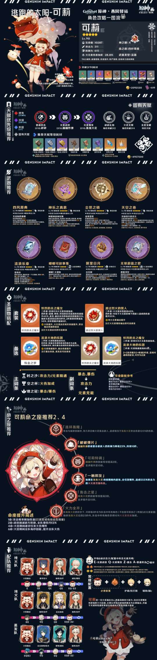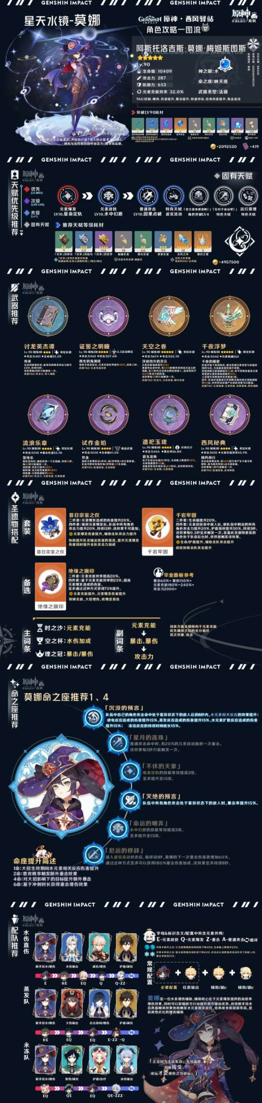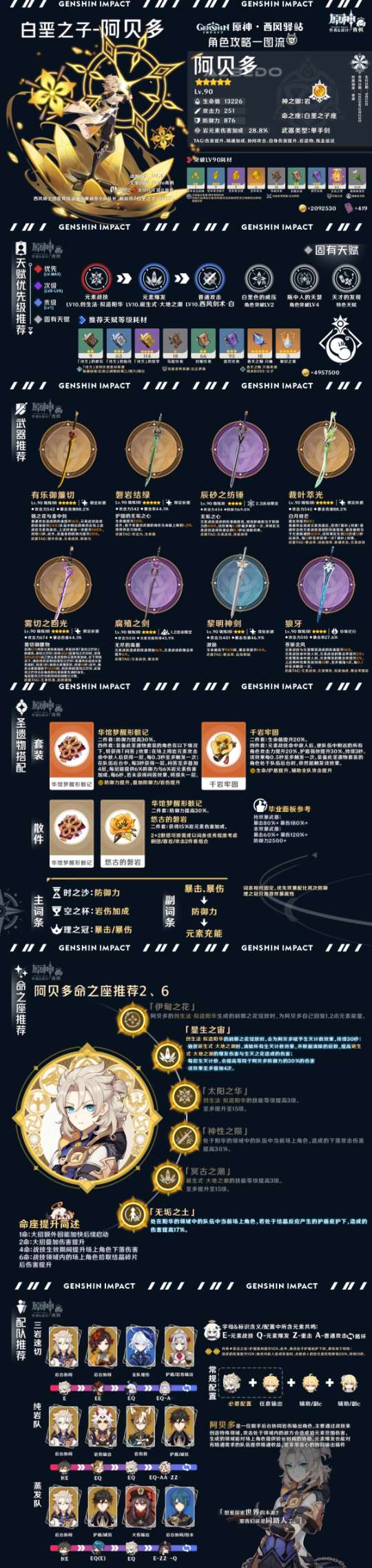 4、圣遗物板块:适配性套装/散搭推荐、标注套装效果及圣遗物特点、主副词条推荐〈部分角色含不同流派词条建议〉、结合上述武器推荐在该板块附上毕业面板参考;