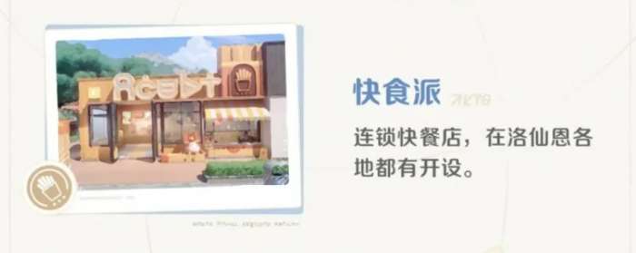 第四个建筑是快食派,这个建筑其实出没的NPC不多,但是它是比较有特点的一个建筑,因为它是在这个小镇里面比较有人气的连锁快餐店,而且这个快餐店后期大家在洛仙恩大陆上各地都可以看到分店,它虽然是作为一个快餐店存在,但是其中触发的剧情不一定很少,很多精灵需要的喂养食物,大家都是可以从这里获取的,大家需要购买一些食材或者是成品食物的时候也可以在这里进行购买。