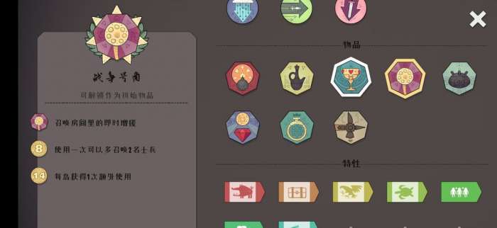 增大容错方面,圣杯能复活一名阵亡将军,战争号角能立刻为队伍补充士兵(非回血)。其他的就按需。