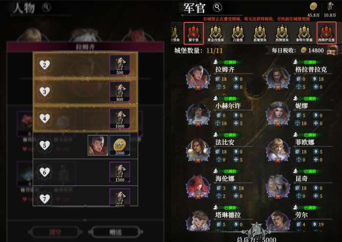 除了专精外,兵力差距也会影响战局。通关第二章后,可以前往审判庭给拉姆齐送礼物获取功绩,也可以在每日的城堡突围玩法中获取功绩,使用功绩即可进行募兵。