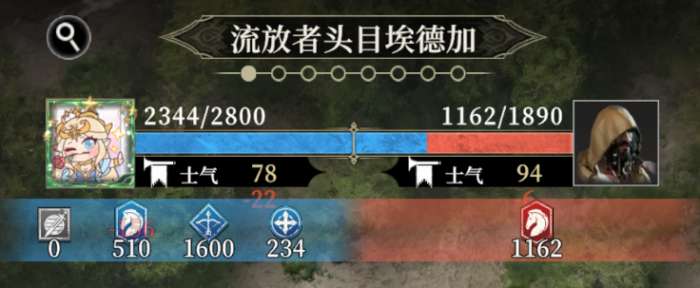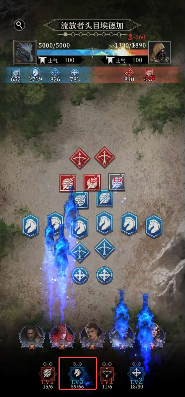 例如在下方例图中,敌军的骑兵数量较多,我方就可以多多上阵远程专精更突出的军官,形成兵种克制,就会更容易击溃敌军啦。