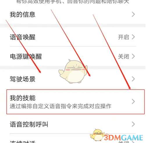 3、点击“我的技能”,对小艺进行训练,编排特定回复方式