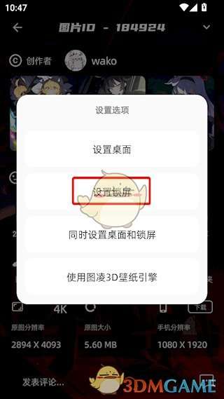 3、选择【设置锁屏】即可设置锁屏壁纸。
