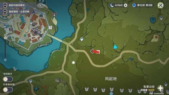 此秘境位于达达乌帕谷上方以及风起地下方,是一个元素试炼秘境传。传过去之后还是向西直走,爬山