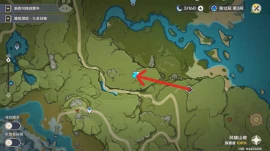 从地图上雪山上方圣遗物本(翠绿,少女本)传出来,然后向西走
