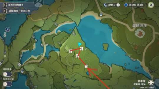 从雪山左边的秘境锚点(山脊守望,苍白/千岩圣遗物本)出来然后跟着图中箭头走