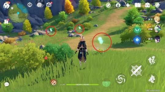 蒙德城外面的一圈,从图中锚点传过来后,经过大桥走到对岸,然后向左边看,这里有三个npc和三株蒲公英,如下图;
