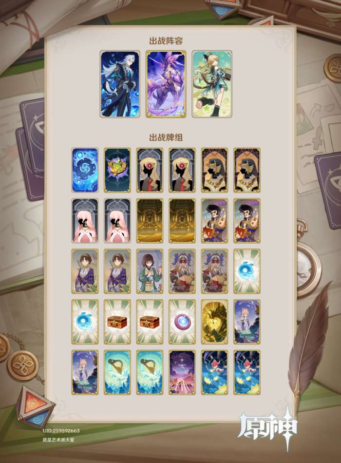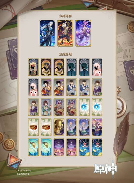 婕德体系可以算是七圣召唤历史上第一个以行动牌构筑为核心而并非以配队为核心的牌组,这是牌组迭代进程中的一大飞跃。换句话说,即使选取的角色之间基本没什么配合,只要满足一些基本前提,也仍然能发挥出婕德体系强大的实力。因此我们首先需要关注构筑原理,然后再介绍较优的配队。