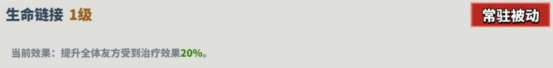 特点:技能作用于所有友方单位,无论是前排坦克还是后排输出,都能享受到20%治疗效果的提升,使团队整体生存能力大幅提高。