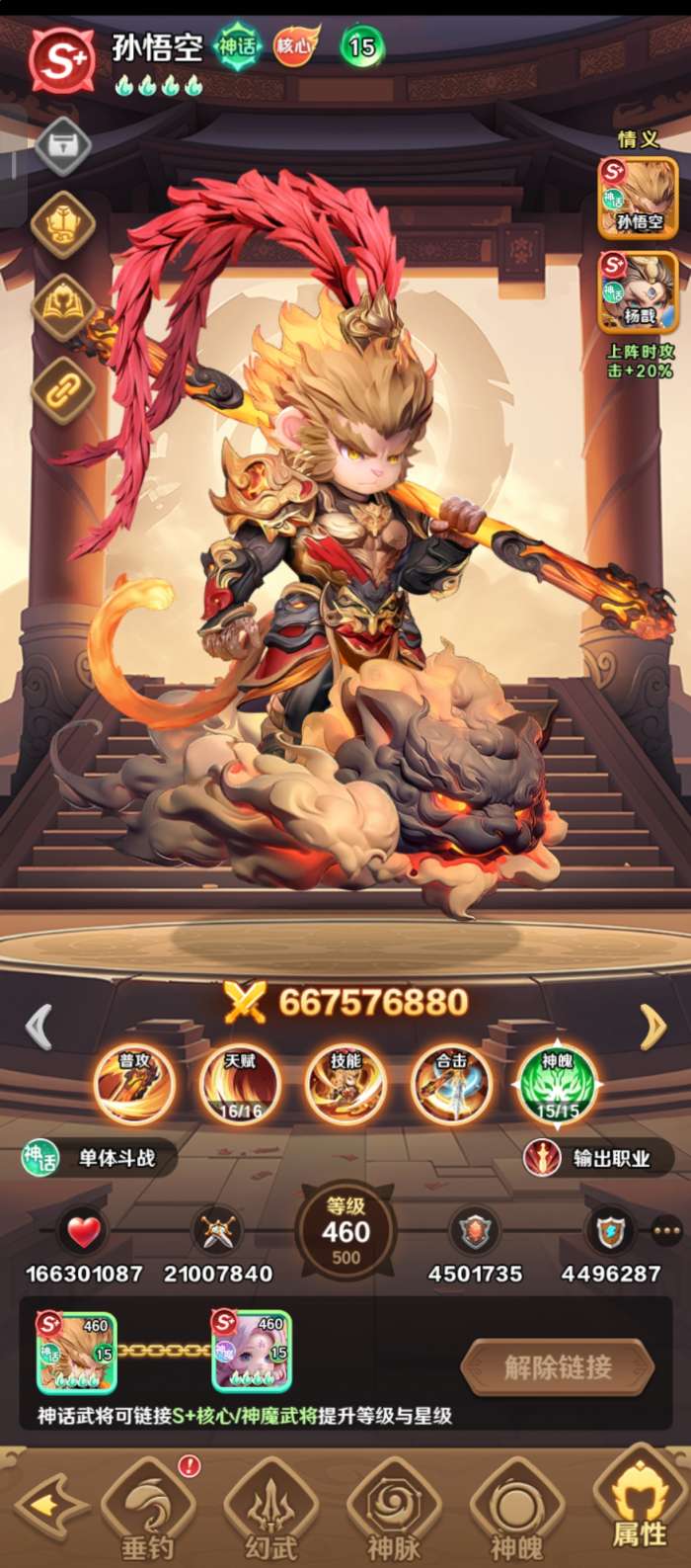 孙悟空在巨神军师游戏当中,也作为神级别的角色,他的普通攻击技能能够直接削减敌人的免伤效果,另外它还能够眩晕对手,一旦敌人的生命值低于50%的时候,他在这样的状态下,还能够再一次追加普通攻击技能。