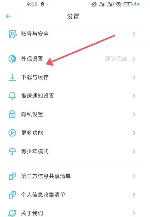 进入设置界面后,点击【外观设置】图标。