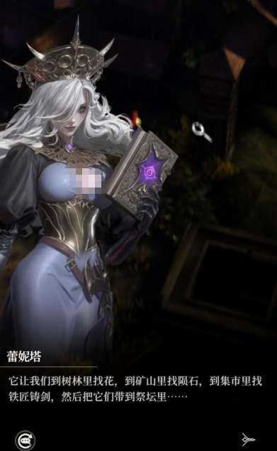 接下来按地图残页的提示去右下角找墓碑,墓碑在一片矮灌木丛旁边,旁边还堆着几个木箱,跟墓碑互动会有两个选项,选搜索能拿到一些基础材料,另外还能看到墓碑上刻着一行小字,这时候就知道要去附近的塔楼解除咒语了,塔楼离墓碑不远,就在西北方向的小高地上,塔顶还挂着个破铃铛,进塔楼后要操作里面的机关解咒,解咒需要角色的魔力值够高,要是魔力不够,就得先回去给角色升级或者换带魔力加成的装备,解咒成功后塔顶的铃铛会响一声,同时远处会有一道淡蓝色的光指向前方,这道光就是通往祭坛的方向,跟着蓝光走大概走个几百米,就能看到祭坛了。