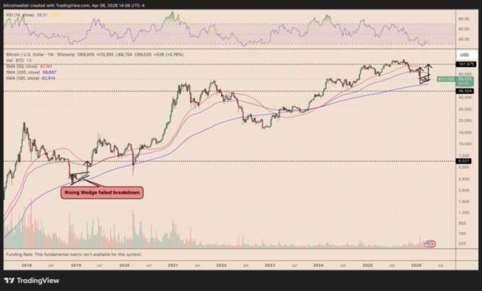 截至2026年,200周均线已多次成功限制比特币下行空间,这提高了市场对“复制2018年底部”的预期。