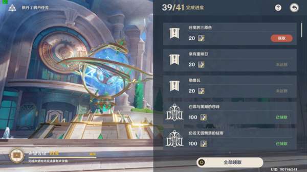 ◇ 选择查看声望—枫丹任务—查看任务列表内是否完成任务。(下图)