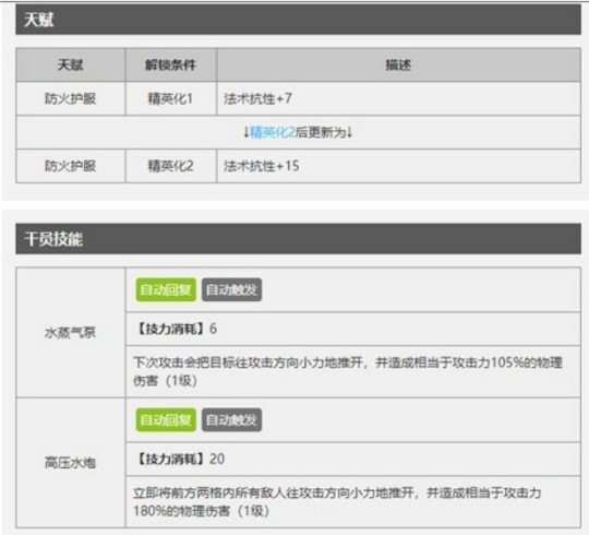 我可以使用技能将前方两格内的所有敌人往攻击方向小力地推开,并对他们造成等于攻击力180%的物理伤害。