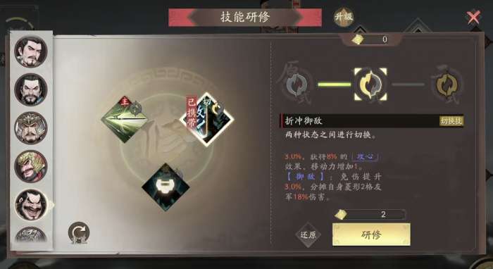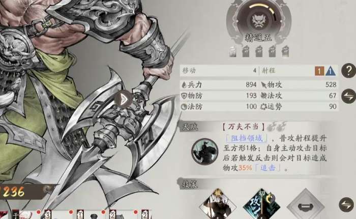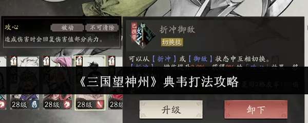 典韦是游戏中一个比较特别的角色,它最大的特点就是可以双形态切换。典韦共有两个形态,分别是折冲和御敌。折冲形态就是他的攻击形态,在该形态下,他的增伤能够提升3%,同时可以获得8%的攻心效果,移动力也可以增加1。而御敌就是它的防御效果,在该形态下典韦自身的免伤效果可以提升3%,并且可以为周围菱形两格范围内的所有友军分摊伤害。基于它的这个特性,很多玩家都会比较纠结在战斗中应该以哪个形态为主要形态,那么小编还是比较推荐御敌,因为其实折冲形态有很多可以替代的武将,并且会表现的比典韦更好,但是如果说你想要寻找一个比较好用的坦克角色,那么典韦绝对是一个很不错的选择。