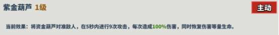 描述:将紫金葫芦对准敌人,在5秒内进行9次攻击,每次造成100%伤害,同时恢复伤害等量生命。