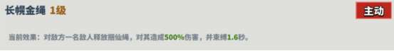 描述:对敌方一名敌人释放捆仙绳,对其造成500%伤害,并束缚1.6秒。