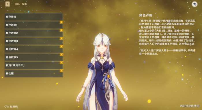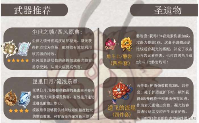 副属性是攻击力加成,使得凝光并不会太缺攻击力,但是对圣遗物的成型有着一定的压力。