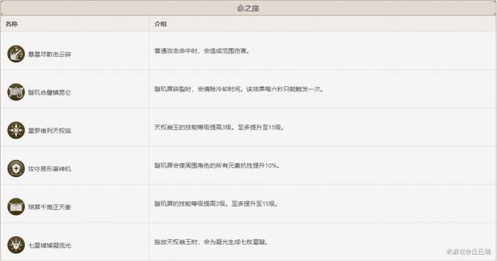 需要注意的是通过该命座生成的7枚星璇,存在时间只有20秒,而且也会随着凝光的退场或者倒地而消失。