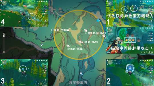 1(遗迹断桥-挑战):获得异色猎刀鳐能力,击破4轮胖胖果;