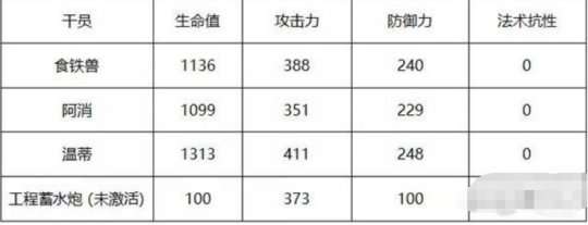 作为六星,温蒂的面板还是全面碾压另外两位的。但是由于信赖加成问题,在血量上会有一些落后,而且自身不带闪避的特性,实际上并没有食铁兽能抗。考虑到蓄水炮,那情况就不同了,当然这样比较也有失公允。总体上来说虽然在肉度上仍有讨论空间,但温蒂依然是最优秀的推型特种。