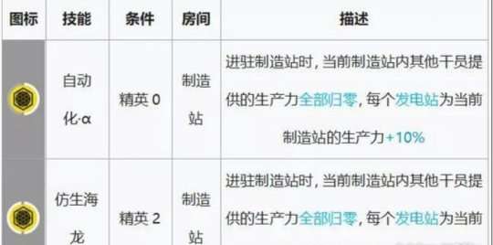 基建技能在三发电站时效果较好,其中可配合一般干员形成制造站的轮班,适用于替换主力,不算强力但是实用效果还是很好的,对缺乏基建工具人的博士效果更好。