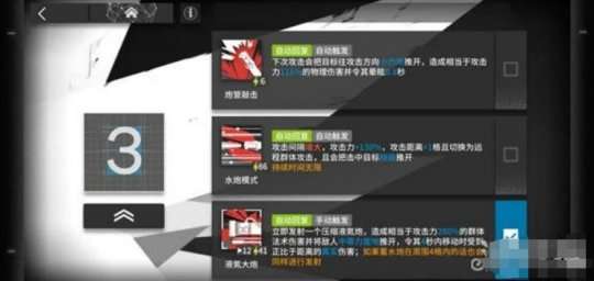 二技能类似煌的二技能,越早下越早启动,其实可以变向理解为一个减速效果,但会拥有更高的单次攻击伤害,攻击距离在专精下会再次加长,其收益大幅度提高,缺点就是攻击间隔的增大。