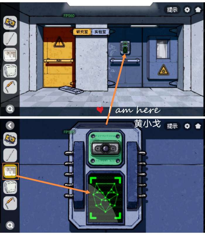 1.点击实验室的门,刷【院长照片】验证,打开门