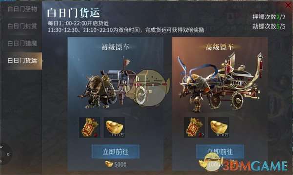 白日门货运即为押镖玩法,每日11:00-22:00开启。