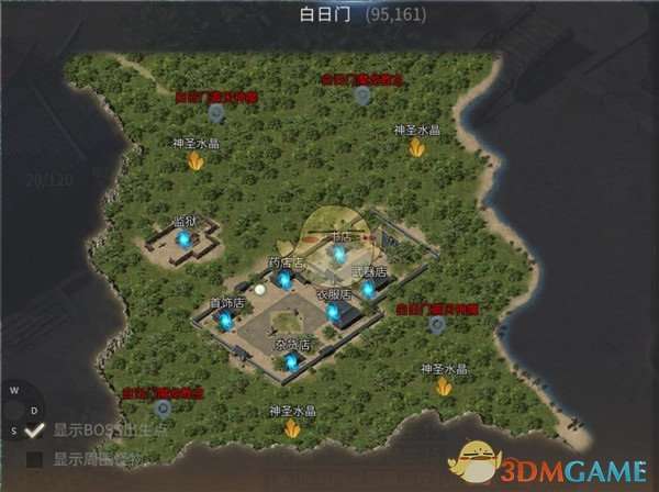 白日门猎魔为击杀BOSS玩法,每日11:00-22:00开始,白日门地图上会固定刷新4只BOSS,分为两只白日门魔龙教主和两只白日门震天神魔,我们从前面的地图中也可以看到。