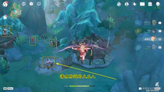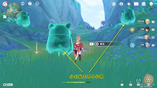 ②:清理附近的丘丘人,可以出现第三个【仙像】;