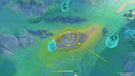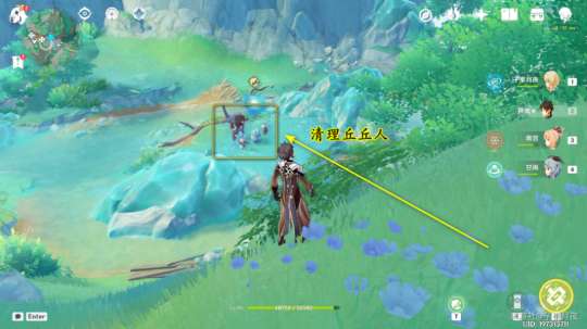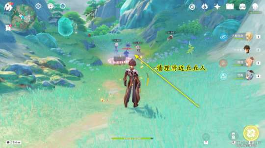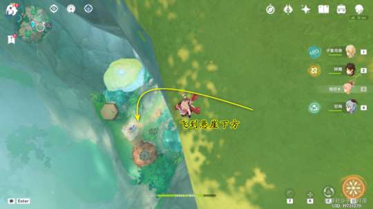 ②:然后飞到悬崖下面,第一处丘丘人那里;