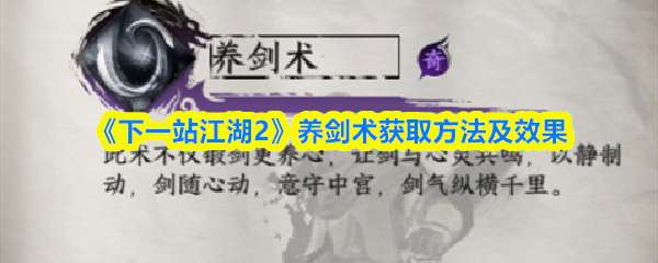 以上就是《下一站江湖2》养剑术获取方法及效果,更多相关攻略,请关注pk游戏网更新!