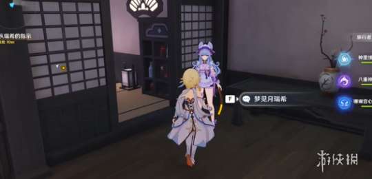 在剧情完成后,与派蒙和梦见月进行交谈。