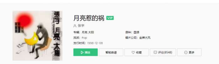 这首歌的歌名叫做《月亮惹的祸》,由张宇演唱,发行于1998年12月1日,收录在专辑《月亮·太阳》中。这是一首苦情歌曲,并且深深烙印在80后的成长回忆中。歌曲在唱出失恋痛苦的同时,更唱出了对于未来的美好愿景,并且能捕捉到失恋中最为微妙的部分,让人感受到歌曲所表达的情感的细腻和真情流露。