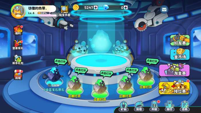 软件提交 专题合集 热门手游在《经典矿工》中,左侧区域是福利中心:记得每天签到领奖、领取新人礼包和免费矿钩体验。右侧为玩法选择区,包括经典排位赛、好友对战、金币场和淘金赛,建议新手从经典模式开始熟悉。右下角可管理矿钩、角色和天赋,而画面中央的原石可通过每日任务与排位赛积累,每日完成简单任务即可逐步收集。