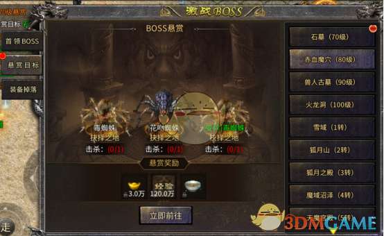 当角色达到70级即可开启悬赏BOSS系统,击杀对应BOSS即可获得大量元宝,经验以及腊八粥提升修为。玩家前期可先完成悬赏目标提升免费会员,点击立即前往即可传送到对应地图进行击杀。