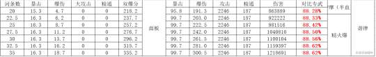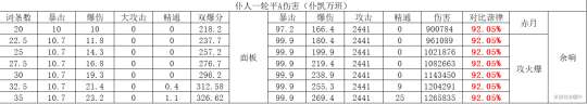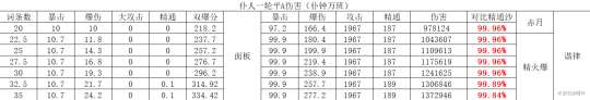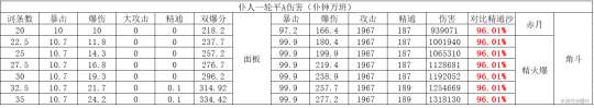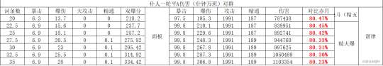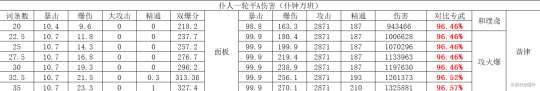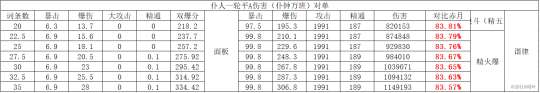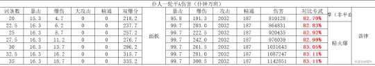 注:由于打的是融化反应未计算匣里以上比较5星均按精一,非5星均按精五。