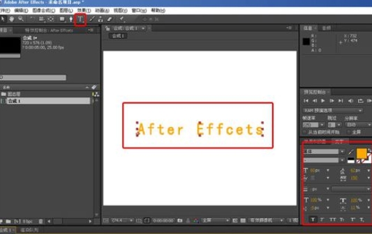 4、为了要从中间位置由大变小,得把中心点移动到文字中央位置,直接点击定位点工具,再移动合成窗口的中心点到中央,可以根据下图所示操作: