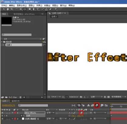 7、最后选择第4秒的关键帧按F9设置为平滑帧,再点击运动模糊打开,也点击文字层的运动模糊开关开启。