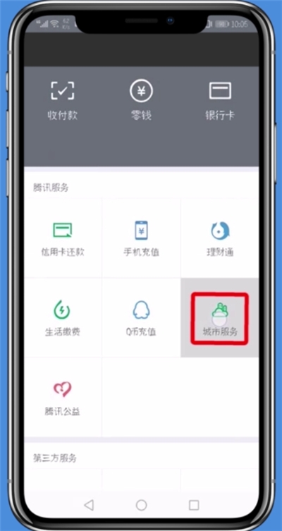2、点击“城市服务”。