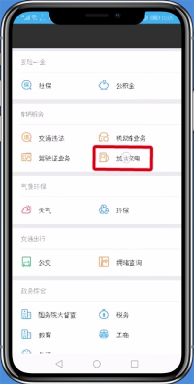 3、上滑屏幕,找到“加油充电”的选项。
