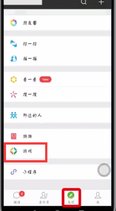 1、打开微信,点击 “发现”,点击选择“游戏”,
