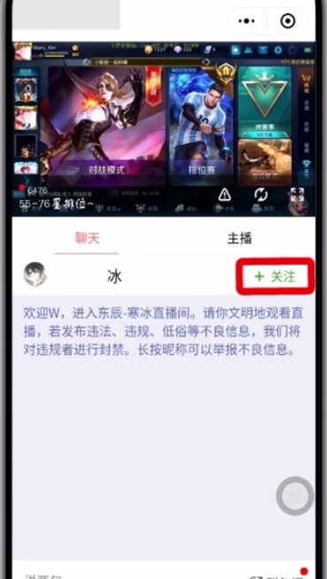 4、找到喜欢的游戏直播点击进去,点击主播名称旁边的“+关注”,就能订阅你喜欢的主播了。