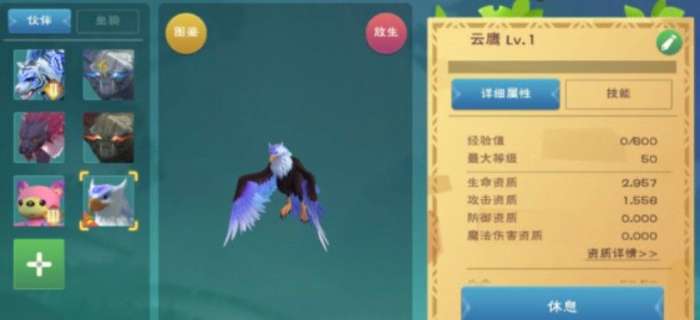 1、普通云鹰:符文包+四叶草包+优质肉(40级可捕捉)。