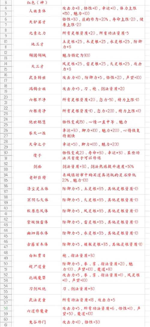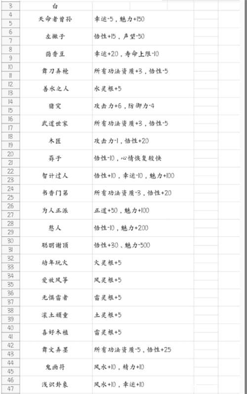 鬼谷八荒先天气运一览